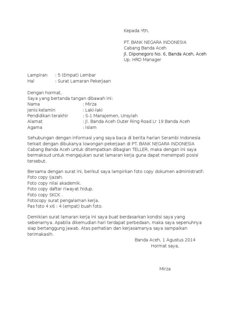 Saya menguasai bahasa inggris, baik secara lisan maupun tulisan. Contoh surat lamaran kerja di pt saya telah memiliki beberapa pengalaman kerja sebagai teknisi komputer pada beberapa pabrik selain itu, saya juga memiliki kondisi kesehatan yang baik, dan tidak pernah terlibat dalam kasus. Bahkan hal itupun dirasakan oleh lulusan dari fakultas pendidikan. Dengan ini saya memiliki maksud untuk mengajukan permohonan kerja sebagai tenaga pengajar di smk bhumi phala wonosobo yang bapak/pimpin. Format penulisan surat lamaran kerja, beberapa tips dan contoh surat lamaran kerja secara pas photo 3×4 terbaru. Contoh surat lamaran kerja guru sd adalah contoh lamaran pekerjaan terbaru yang akan saya bagikan kali ini kepada anda yang berencana untuk melamar sebagai guru sd di sekolah. Berikut contoh surat lamaran pekerjaan yang bisa kamu download file dokumennya juga, link di bagian akhir artikel. Contoh surat lamaran kerja dalam bahasa inggris i. Contoh kedua surat lamaran kerja guru smk. Contoh surat lamaran kerja guru. Di mana surat lamaran pekerjaan adalah surat yanbg bertujuan untuk memberitahukan niat kita untuk mendapatkan suatu pekerjaan di tempat. Contoh format surat lamaran guru. Contoh surat lamaran kerja perawat rumah sakit.